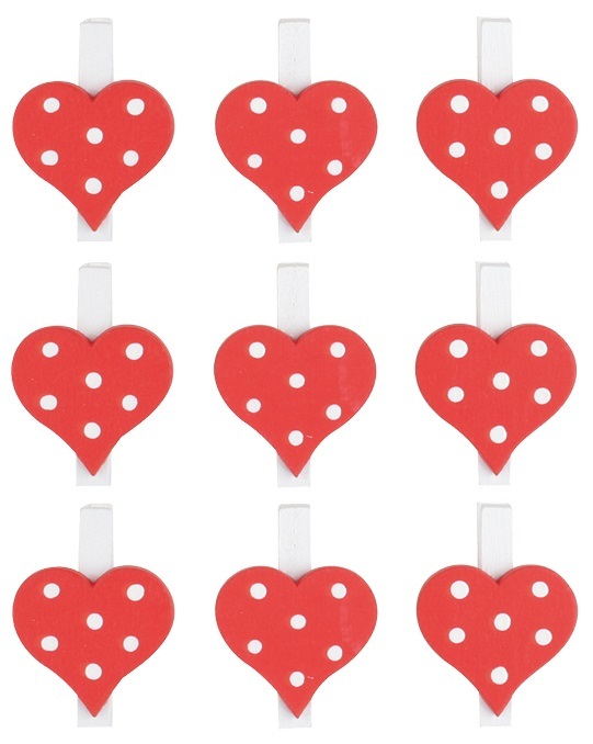 Srdíčko dřevěné na kolíčku 3 cm 9 ks červené