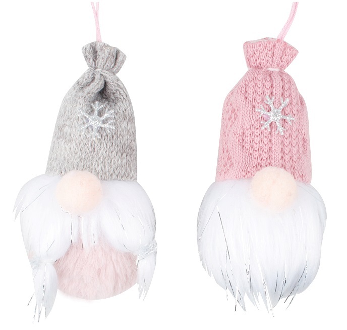 Skřítek na zavěšení s vločkou růžovo-šedý 9 cm