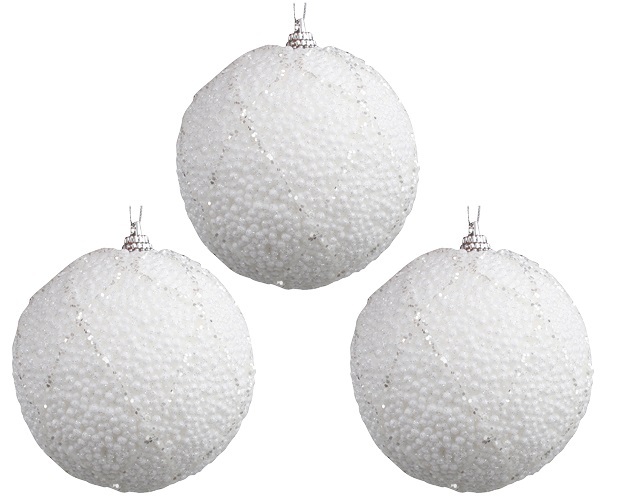 Baňky bílé s glitrovou mřížkou 8 cm, 3 ks