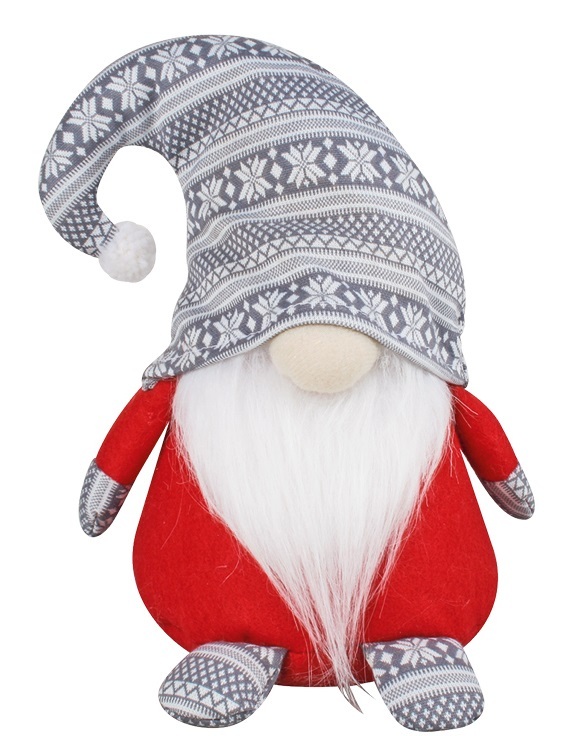 Skřítek na postavení v šedé čepici 25 cm červený