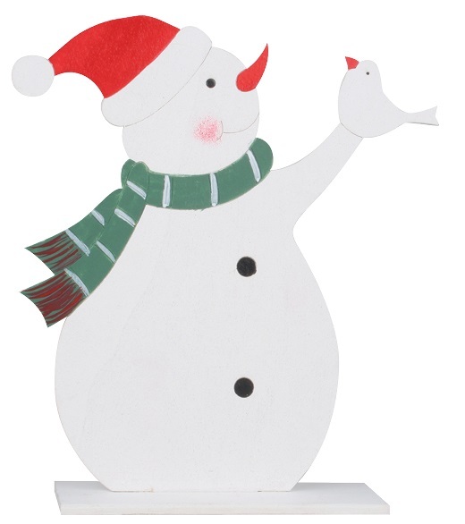 Sněhulák v čepici dřevěný na postavení 14 x 18 cm