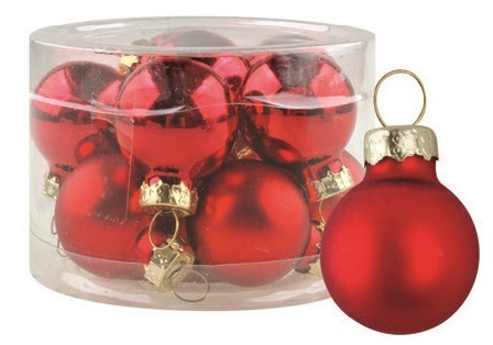 Sada skleněných baněk červených 2,5 cm, 12ks
