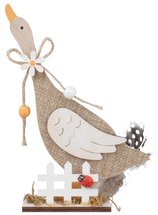 Dřevěná husa na postaveníHusička za plotem snadno zapadne do každé výzdoby a přivede jaro i do Vašeho domova.Přírodní neutrální barvy, moderní design. przeczytaj całość