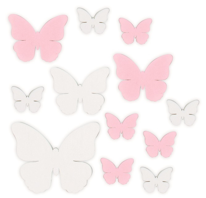 Motýli bílořůžoví velikost 2,5 - 4,5 cm, 12 ks v sáčku