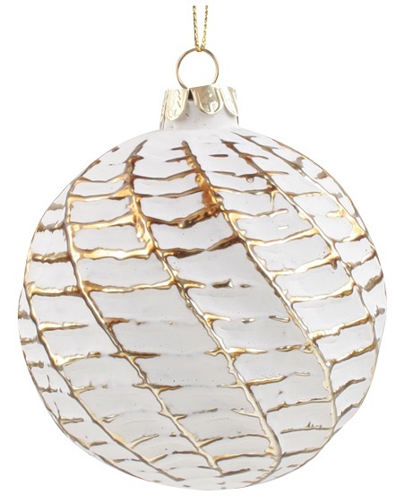 Sada skleněných baněk 8 cm, 4 ks v balení, bílozlaté s patinou