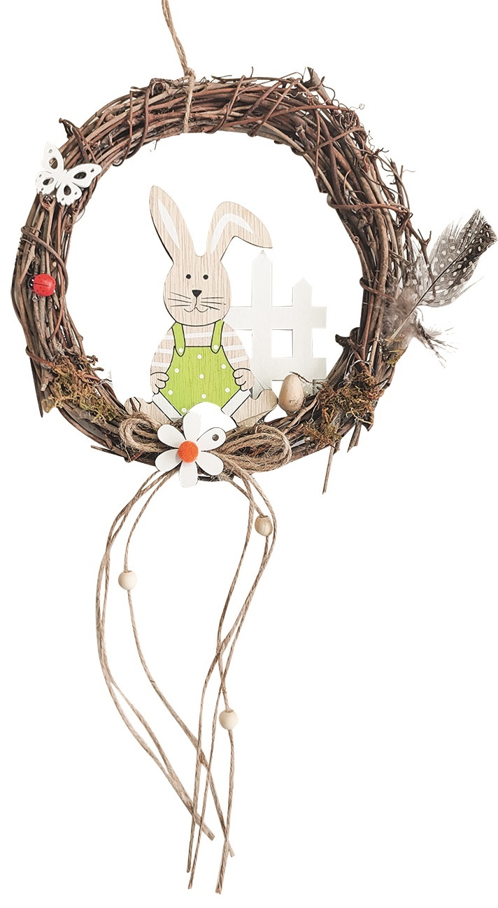 Proutěný věnec se zajíčkem na zavěšeníVěneček díky provázku můžete snadno pověsit na zeď či dveře.Dekorace z přírodních materiálů lehce zkombinujete téměř s čímkoliv. przeczytaj całość