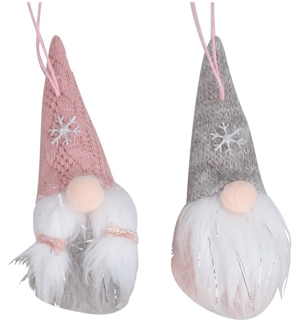 Skřítek na zavěšení s vločkou bílo-růžový 12 cm