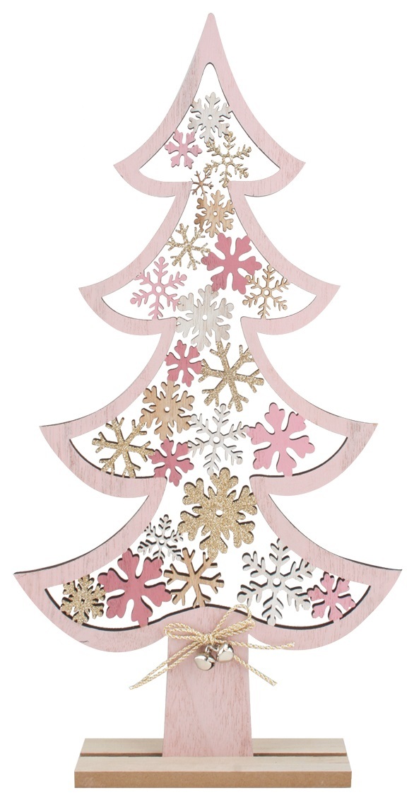 Strom dřevěný s vločkami 20 x 39 cm, růžový