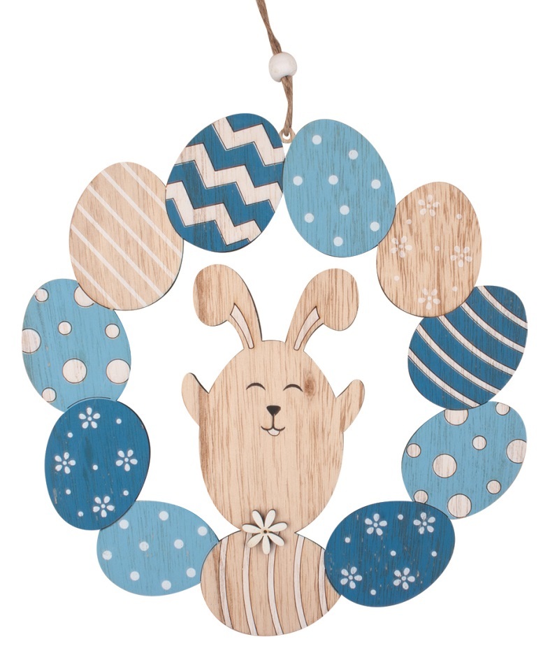 Věnec dřevěný z vajíček se zajícem 22 cm