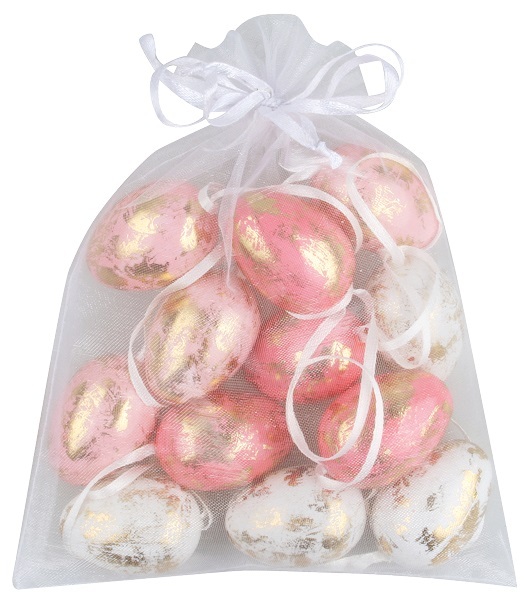 Vajíčka se zlatým zdobením 4 cm, 12 ks v organzovém pytlíku