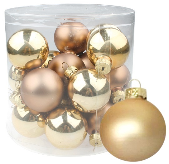 Sada skleněných baněk zlatých 4 cm, 18 ks