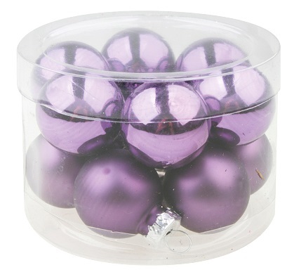 Sada skleněných baněk fialových 2,5 cm, 12ks