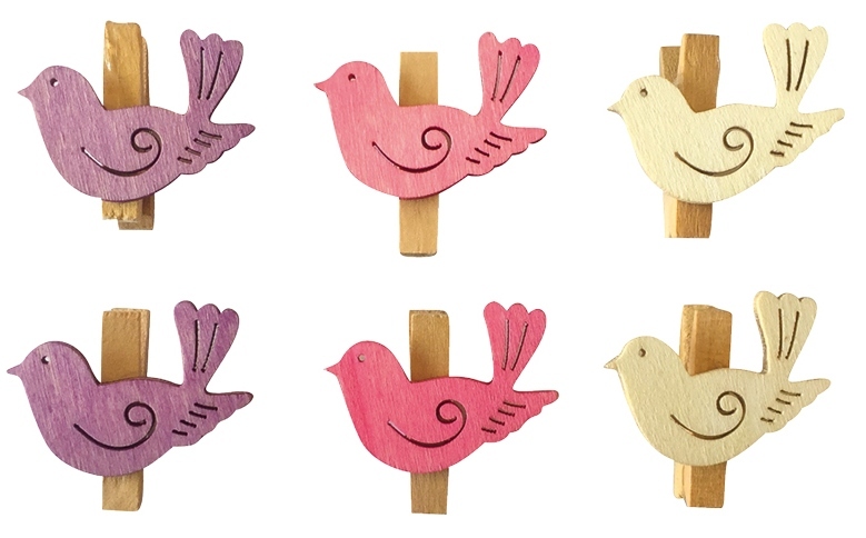 Dřevění ptáčci s kolíčkem 4 cm, 6 ks