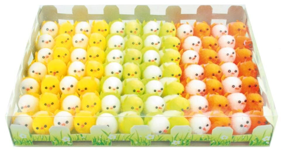 Plyšová kuřátkaKuřátka využijete k různým dekoračním a aranžérským účelům.Můžete je použít ke zdobení věnců, vazeb či jiných dekorací.84 kusů v krabičce mixem barev.  przeczytaj całość