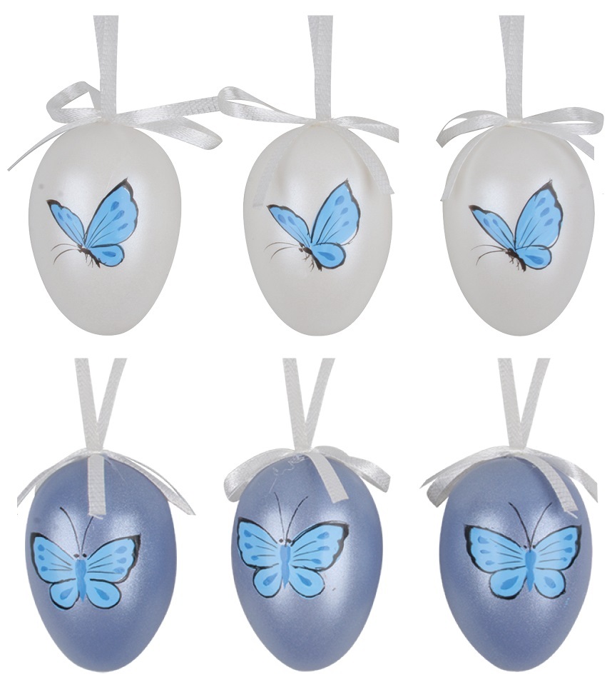 Vajíčka modrobílá s motýlky 6 cm, 6 ks v balení
