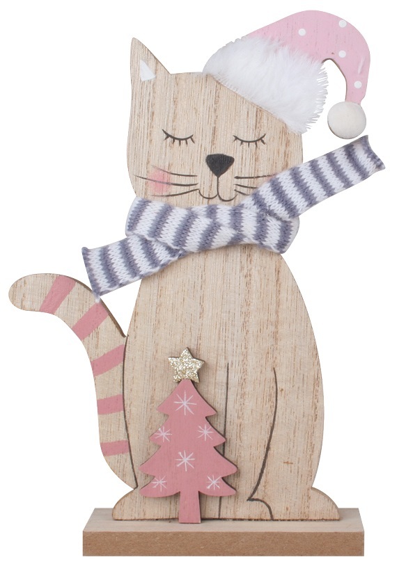 Dřevěná kočička v čepici s růžovými detailyRoztomilá kočička navodí příjemnou zimní atmosféru i ve vašem domově!Dřevěné dekorace jsou velmi oblíbené, univerzální a hodí se do každého interiéru. przeczytaj całość