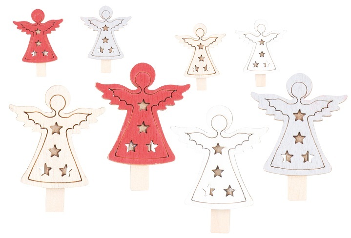 Anděl dřevěný na kolíčku 4,5 cm 8 ks