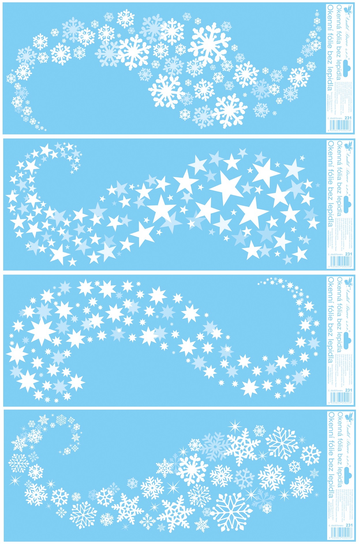 Okenní fólie pruhy s glitrem 60 x 22,5 cm, vločky, hvězdy