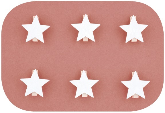Hvězda dřevěná 4 cm na kolíčku, 6 ks bílá