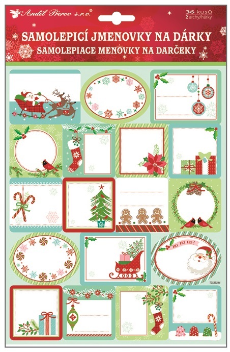 Samolepicí jmenovky na dárkyHledáte způsob, jak originálně popsat dárky? Využijte k tomu naše samolepící jmenovky s vánočními motivy!Různé velikosti jmenovek cca: 6,2 x 4,8 cm, 4,5 x 4,5 cm, 6,2 x 4 cm.36 kusů v balení, pěkné vánoční motivy. przeczytaj całość