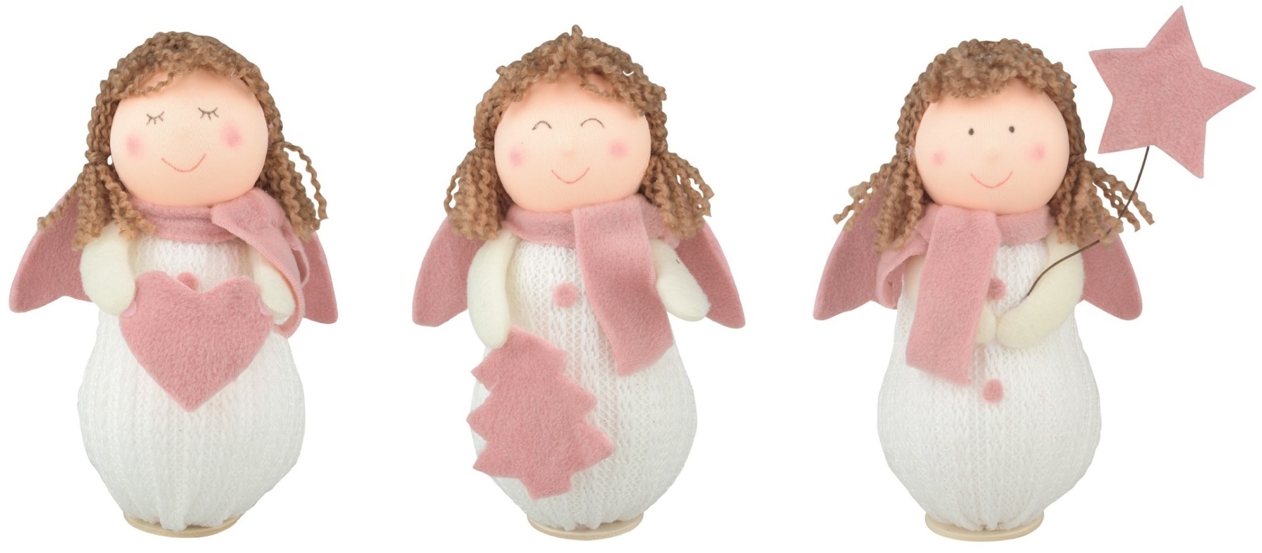 Anděl pletený bílý s růžovými doplňky 17 cm na postavení