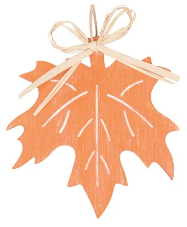 Dřevěný list na zavěšení oranžový javor 10 cm