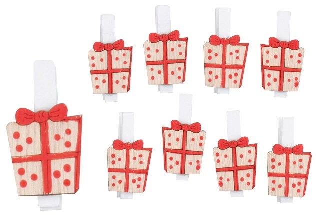 Dřevěné dárečky na kolíčku 4,5 cm, 9 ks