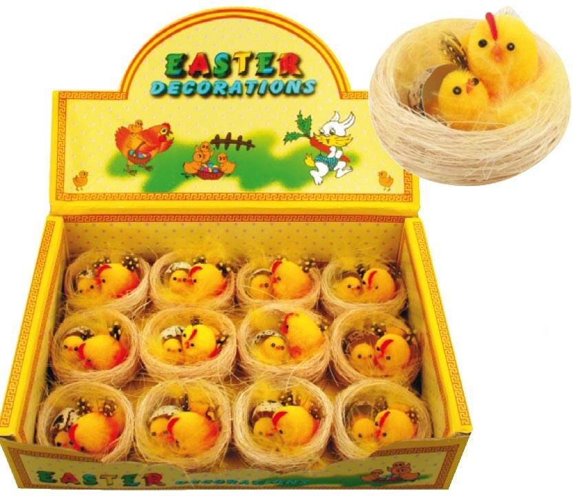 Kuřátka plyšová ve světlém hnízdě 6 cm, 12ks
