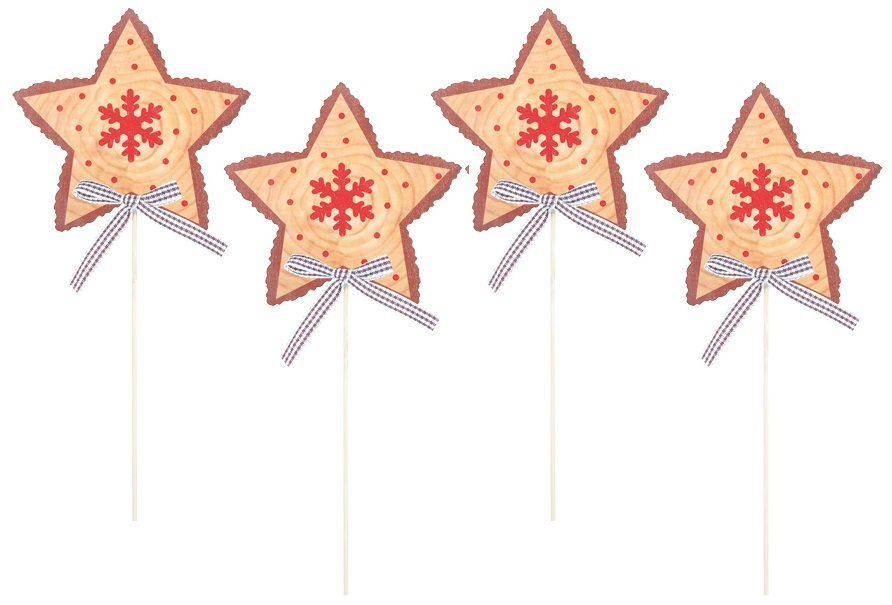 Hvězda dřevěná 8 cm + špejle, 4 ks