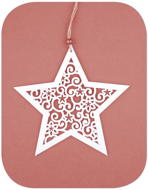 Hvězda dřevěná s dekorem na zavěšení 18 cm, bílá