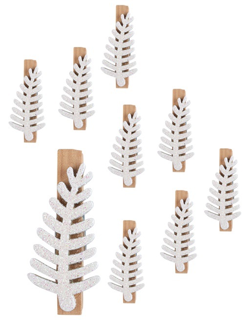 Větvičky s glitry na kolíčku 4 cm, 9 ks bílé