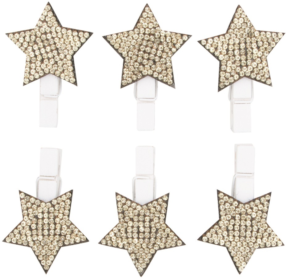 Hvězda se zlatými kamínky na kolíčku 3 cm 6 ks
