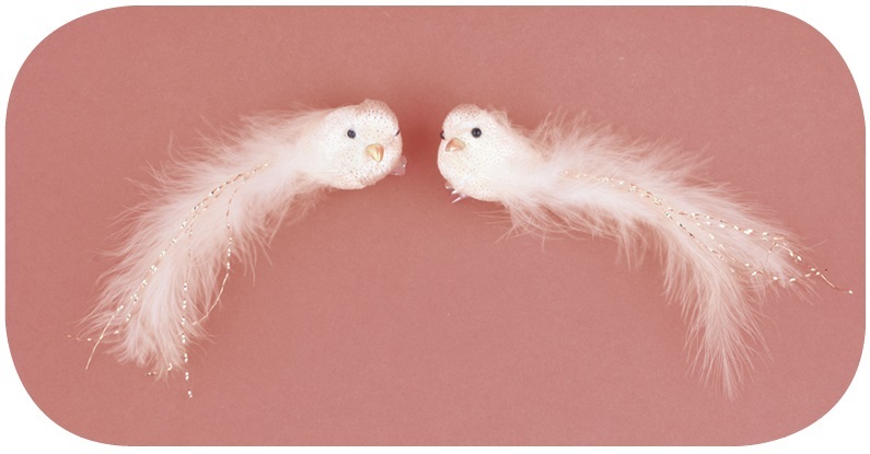 Ptáček plyšový na klipu 2 ks 14 cm, šampaň