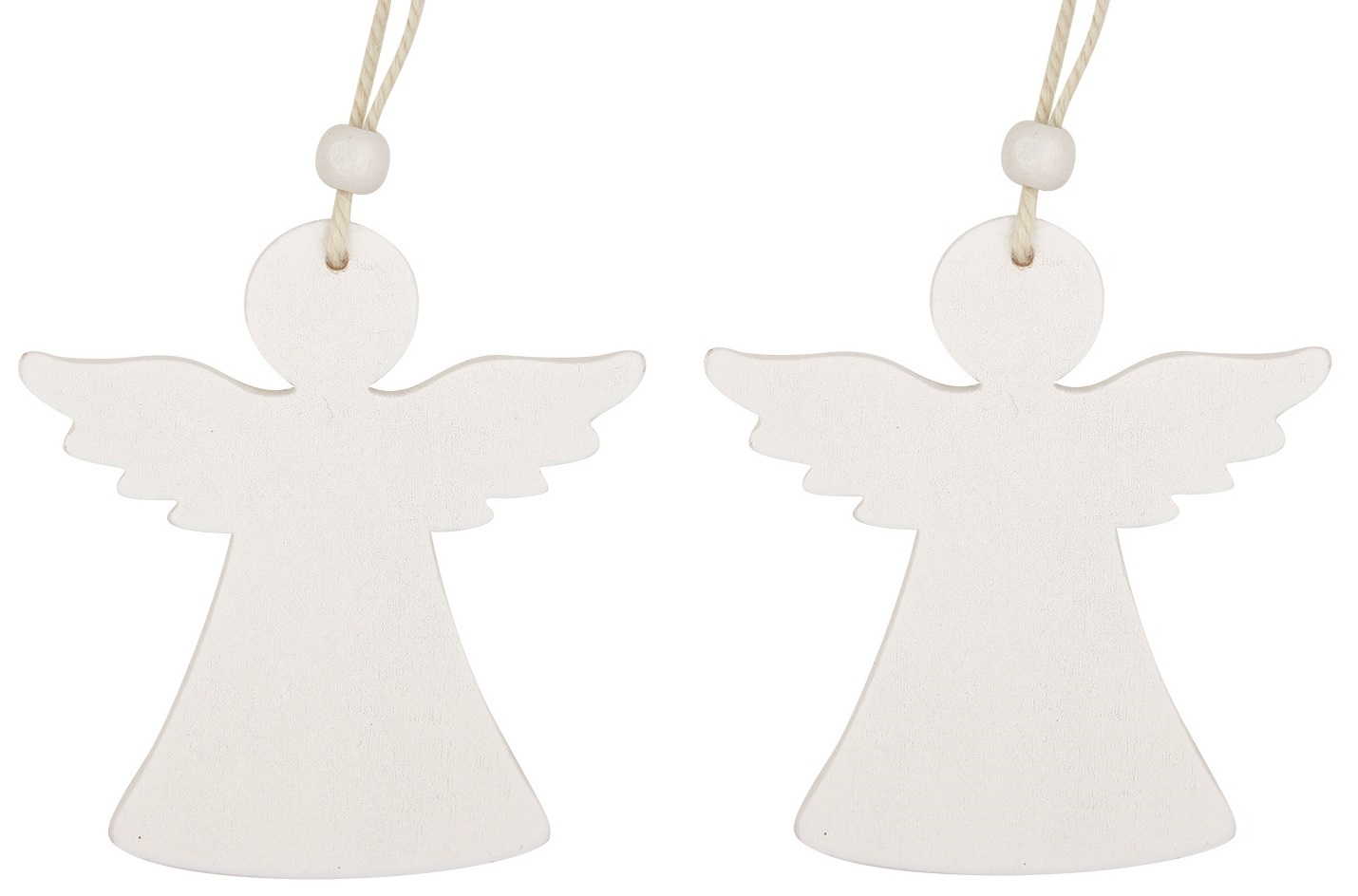 Anděl dřevěný bílý, 9 cm 2 ks, na zavěšení