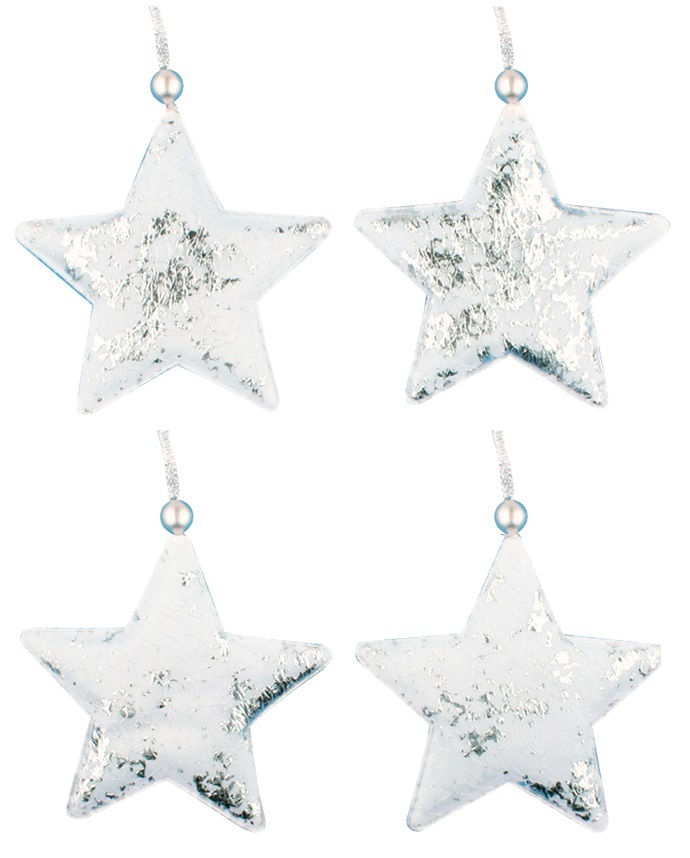 Hvězda látková bílo-stříbrná 9 cm, 4 ks