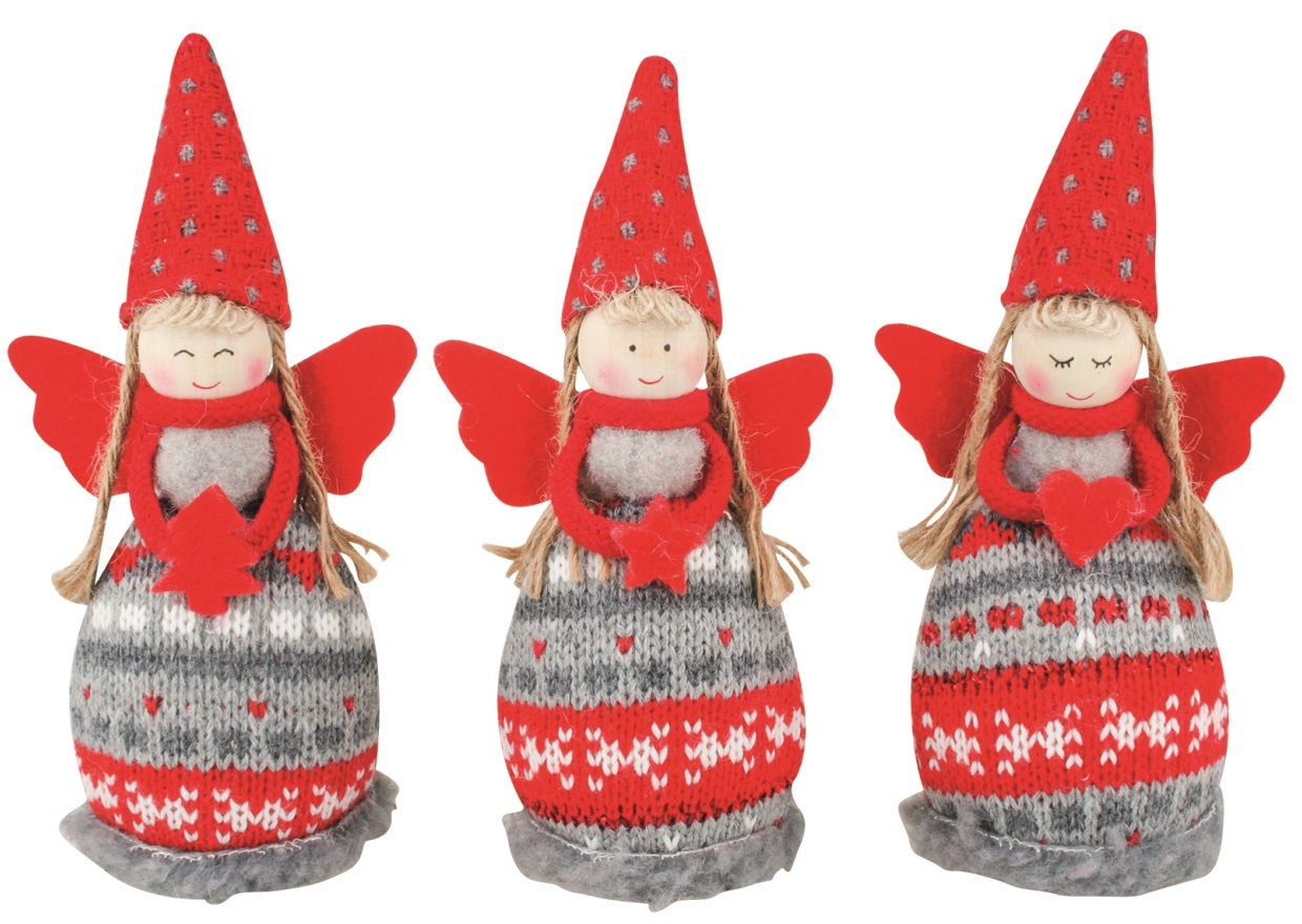 Anděl pletený se špičatou čepicí 12 cm na postavení