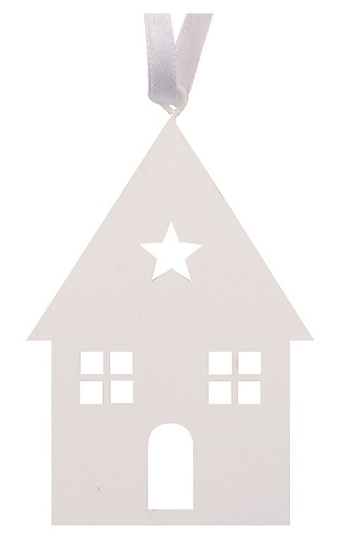 Kovový domek na zavěšení bílý 7 x 9,5 cm