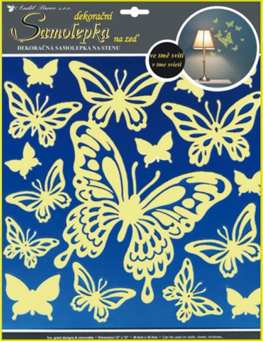Samolepky na zeď svítící ve tmě 32 x 31 cm, motýli