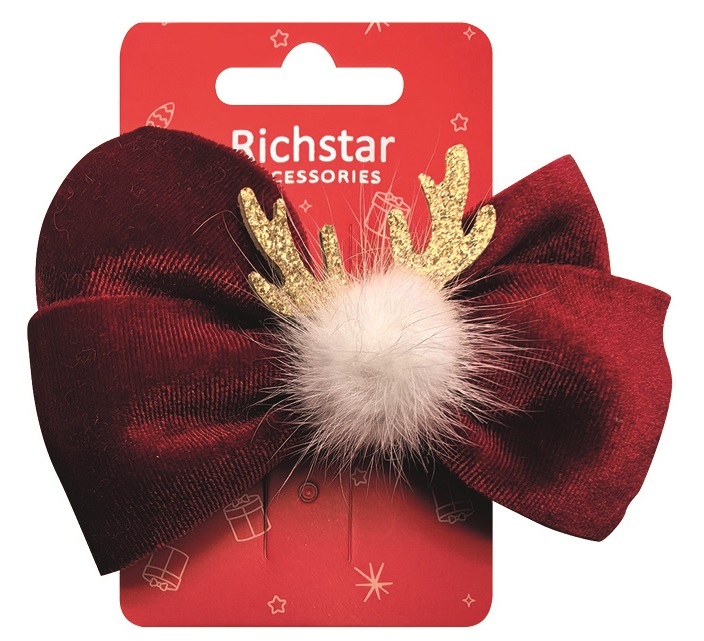 Mašle do vlasů sametová vánoční, červená 11 x 8 cm