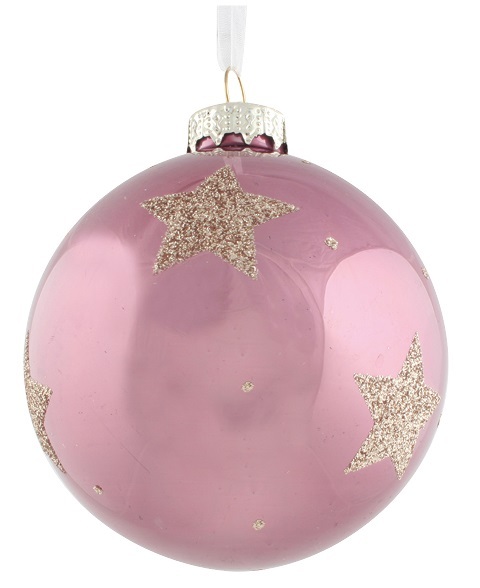 Sada skleněných baněkSkleněné fialové baňky se zlatými hvězdičkami rozzáří i vaše vánoce!Díky očku a tenké nitce baňky snadno zavěsíte třeba na vánoční stromeček.4 kusy v krabičce. przeczytaj całość