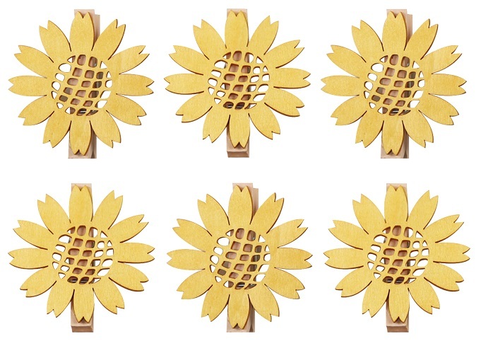 Slunečnice dřevěné na kolíčku 6 cm, 6 ks v sáčku