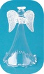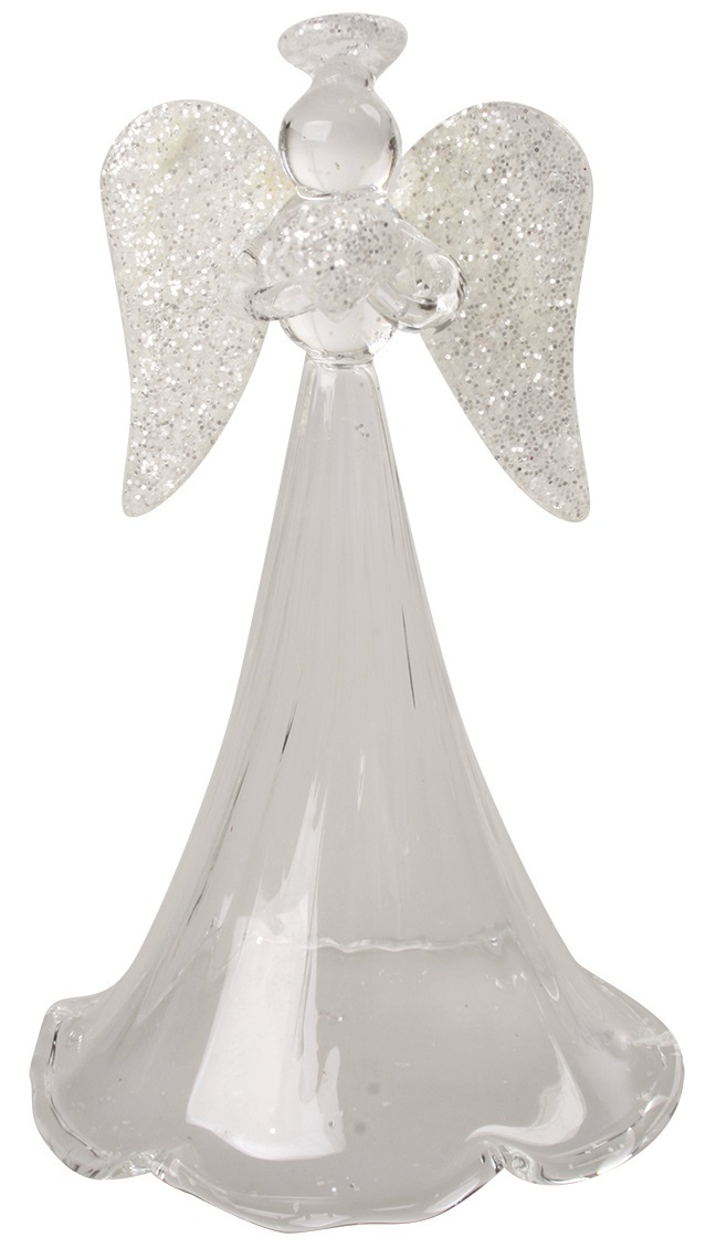 Anděl skleněný na postavení s průhlednou sukní 11 cm