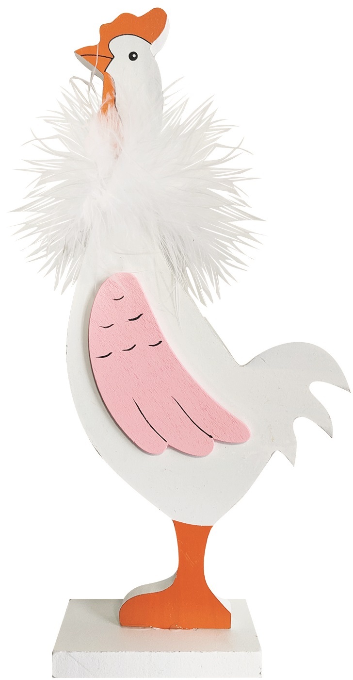 Dřevěná slepička bílá s peřím na postaveníSlepička krásně zapadne do jakékoliv výzdoby a pomůže navodit velikonoční atmosféru. przeczytaj całość