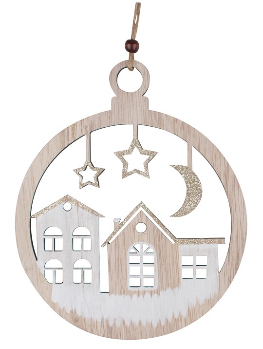 Baňka domky s nebem se zlatým glitrem na zavěšení 19,5 cm