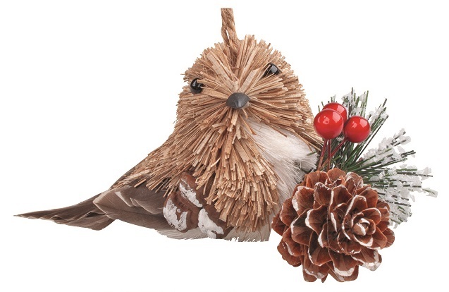 Ptáček z přírodnin na zavěšení s větvičkou 13 x 7 cm