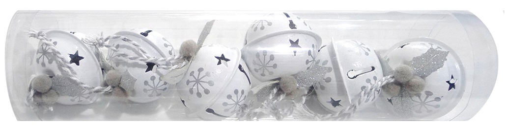 Rolničky 4 cm, 6 ks, bílé se stříbrným potiskem