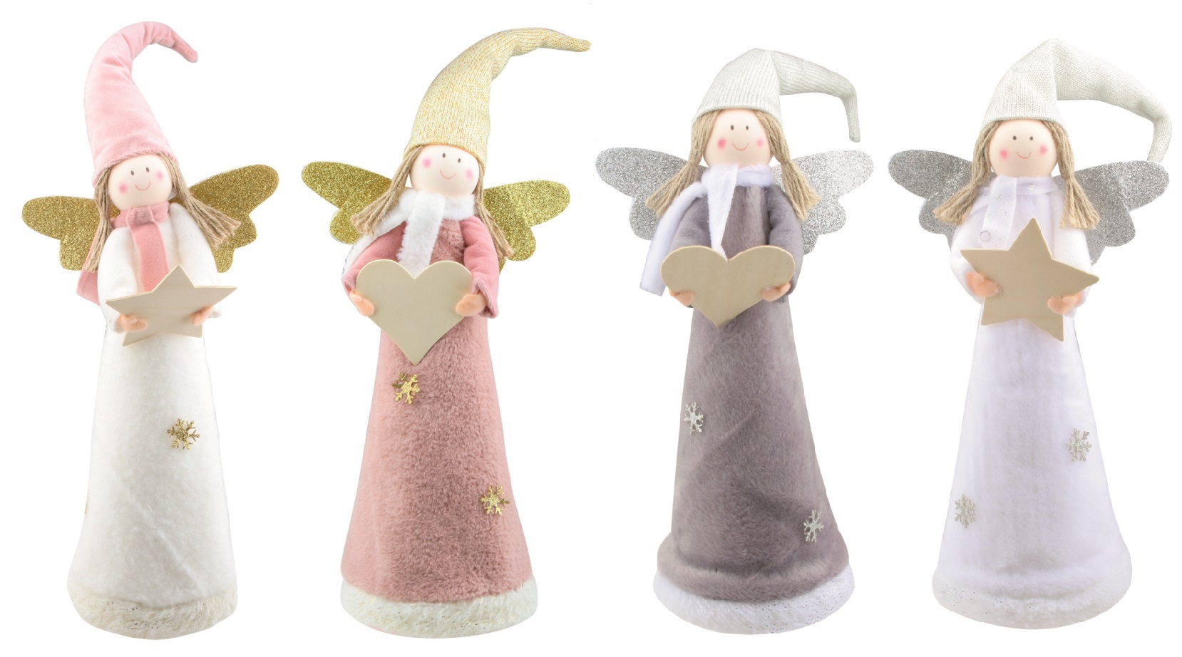 Anděl plyšový se špičatou čepicí 40 cm na postavení