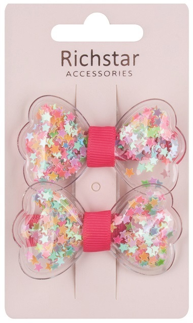 Mašličky do vlasů na klipuMašličky na klipu se sypkou náplní v podobě drobných metalických hvězdiček oživí každý účes!Vhodné pro menší i větší parádnice.Dva kusy na platě.Velikost sponky je cca 6 cm. przeczytaj całość