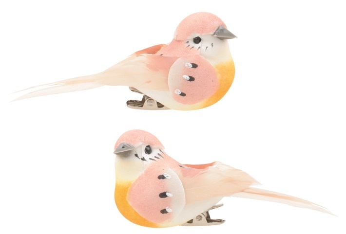 Ptáček na klipu 8 cm, 2 ks, růžový