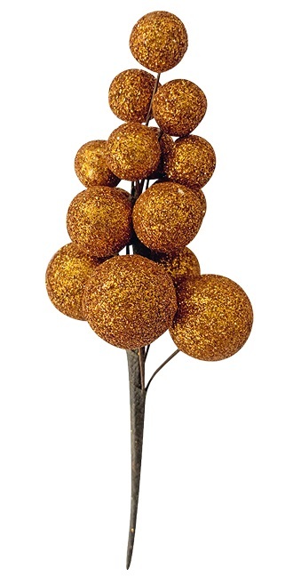 Větvička zlatých bobulí s glitry 13 cm, 2 ks